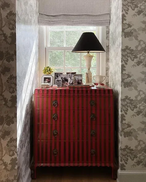 Painterly designs - There are so many designs you can paint on a piece of furniture. Example: I up-cycled the standing mirror in my bedroom with a floral motif and painted a trompe l'oeil effect on a console. I love this organic designs by Lauren Weiss.