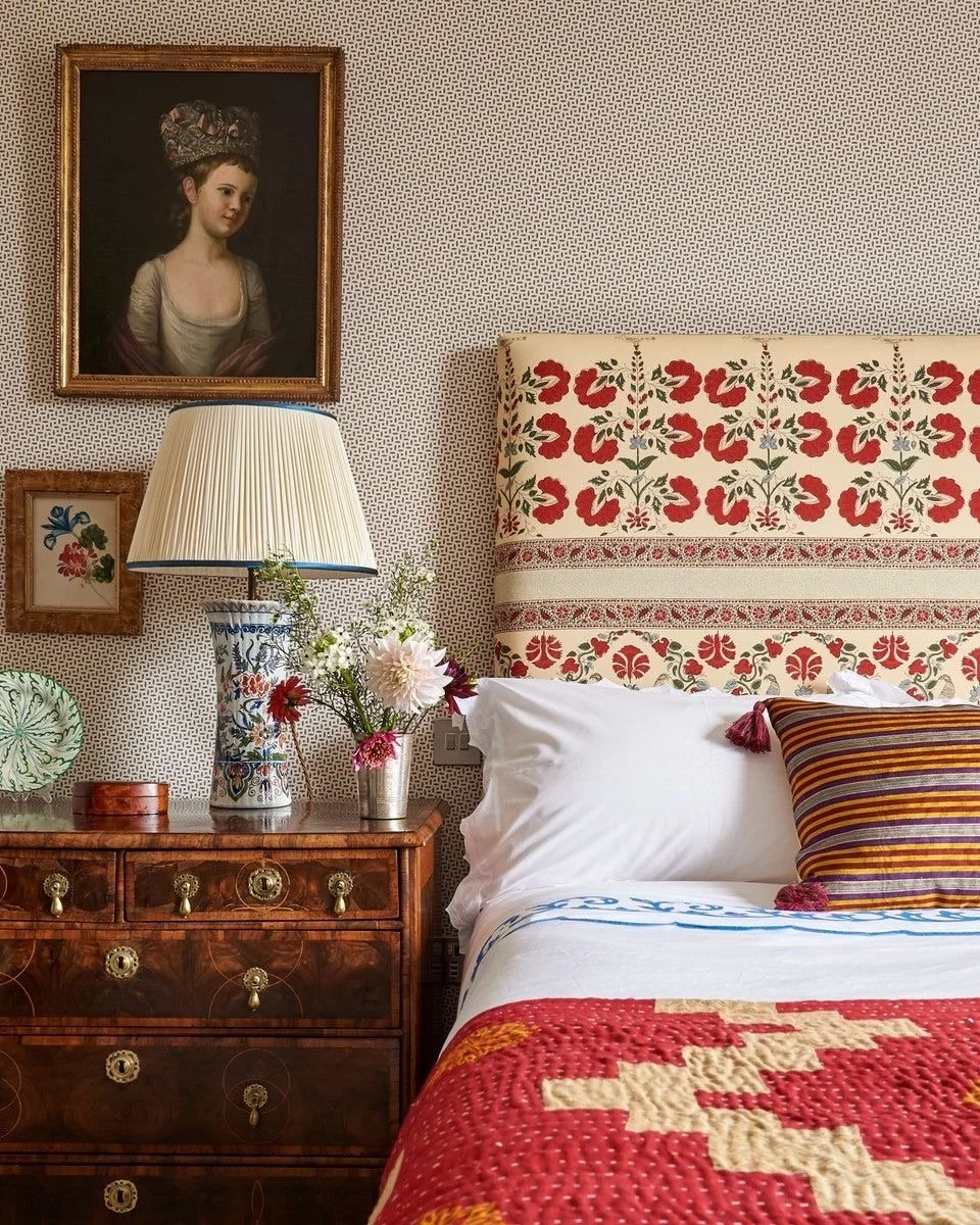 Bold, large-scale prints, like suzani or chinoiserie, work well as an anchor pattern.