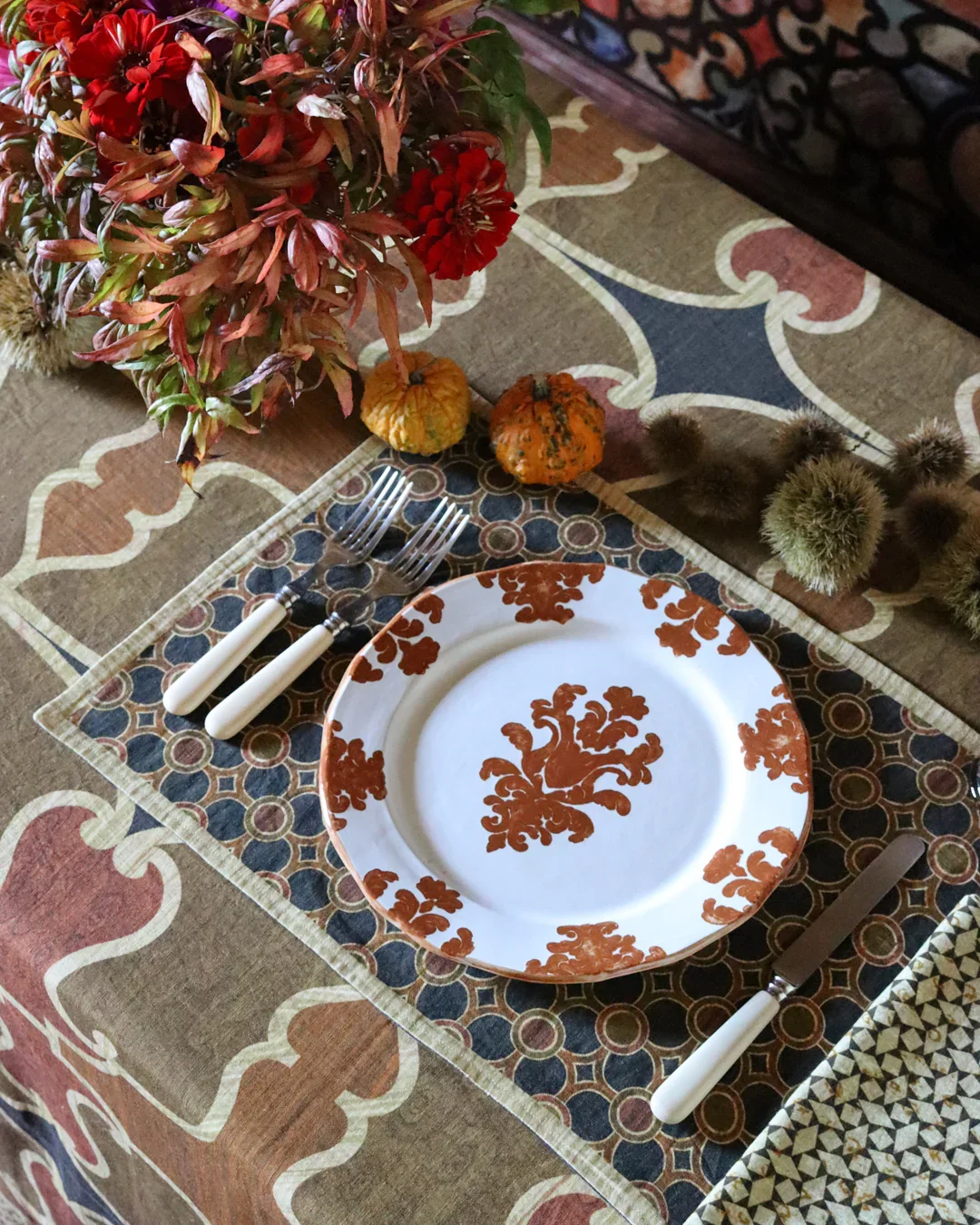 Setting a table with a mix of patterns is the least committal way to experiment with pattern. You only have to live with it for the duration of the meal and can re-mix the patterns in different combinations for the next one. Also, there are so many options for pattern when setting a table including plates (dinner plates and salad/dessert plates), serving dishes, tablecloth, napkins, and table accessories like vases. As you’re investing in dinnerware and linens with pattern, you’ll want to use the same principles of scale, shape, and color; that way you’ll be able to mix them in a variety of ways. For more inspiration and specific combos, check out my styling guides to tables.