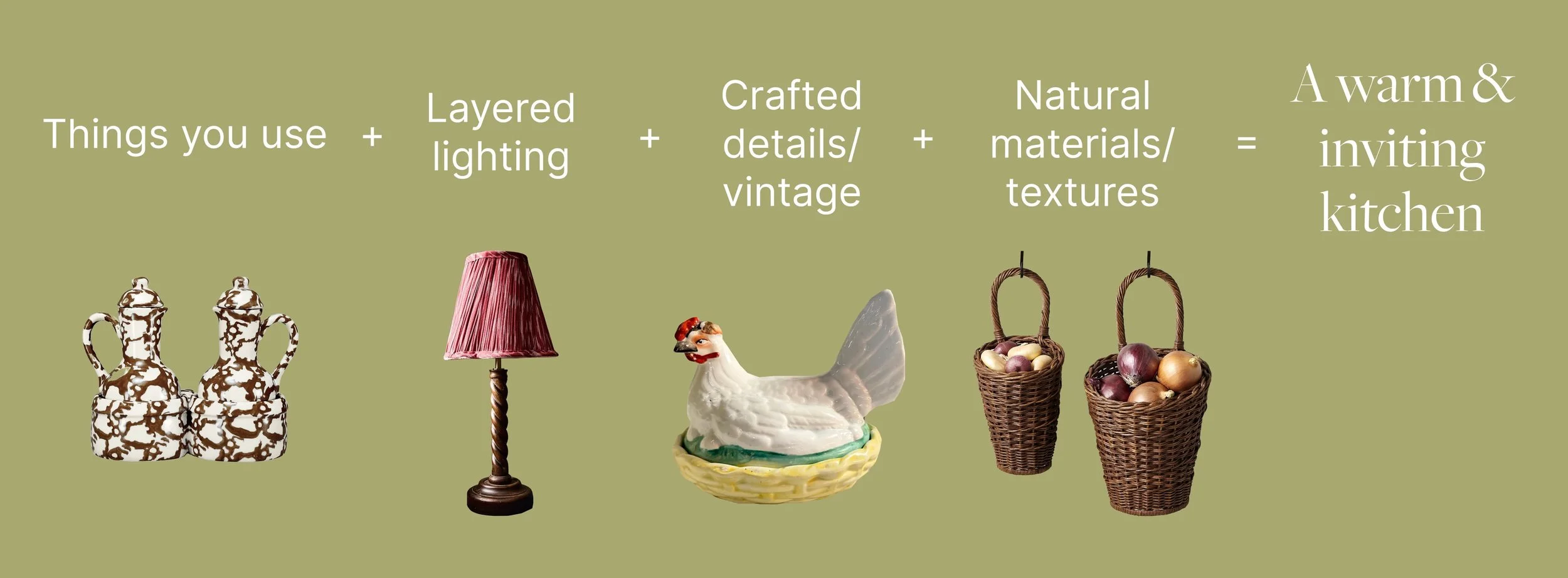 Soulful everyday details are your foundation — but the magic really happens when you layer in lighting, craftmade pieces, and natural materials.